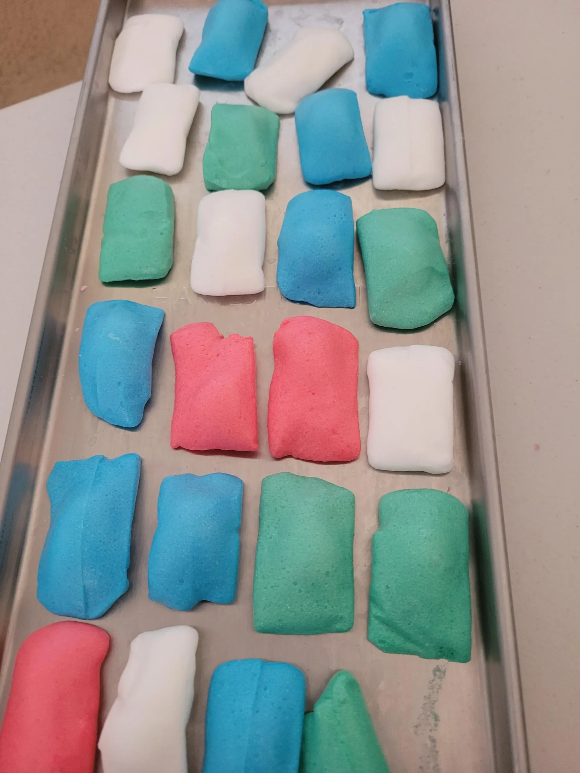 Materials: Sugar, corn syrup, vegetable oil, natural and artificial flavoring, egg whites, salt