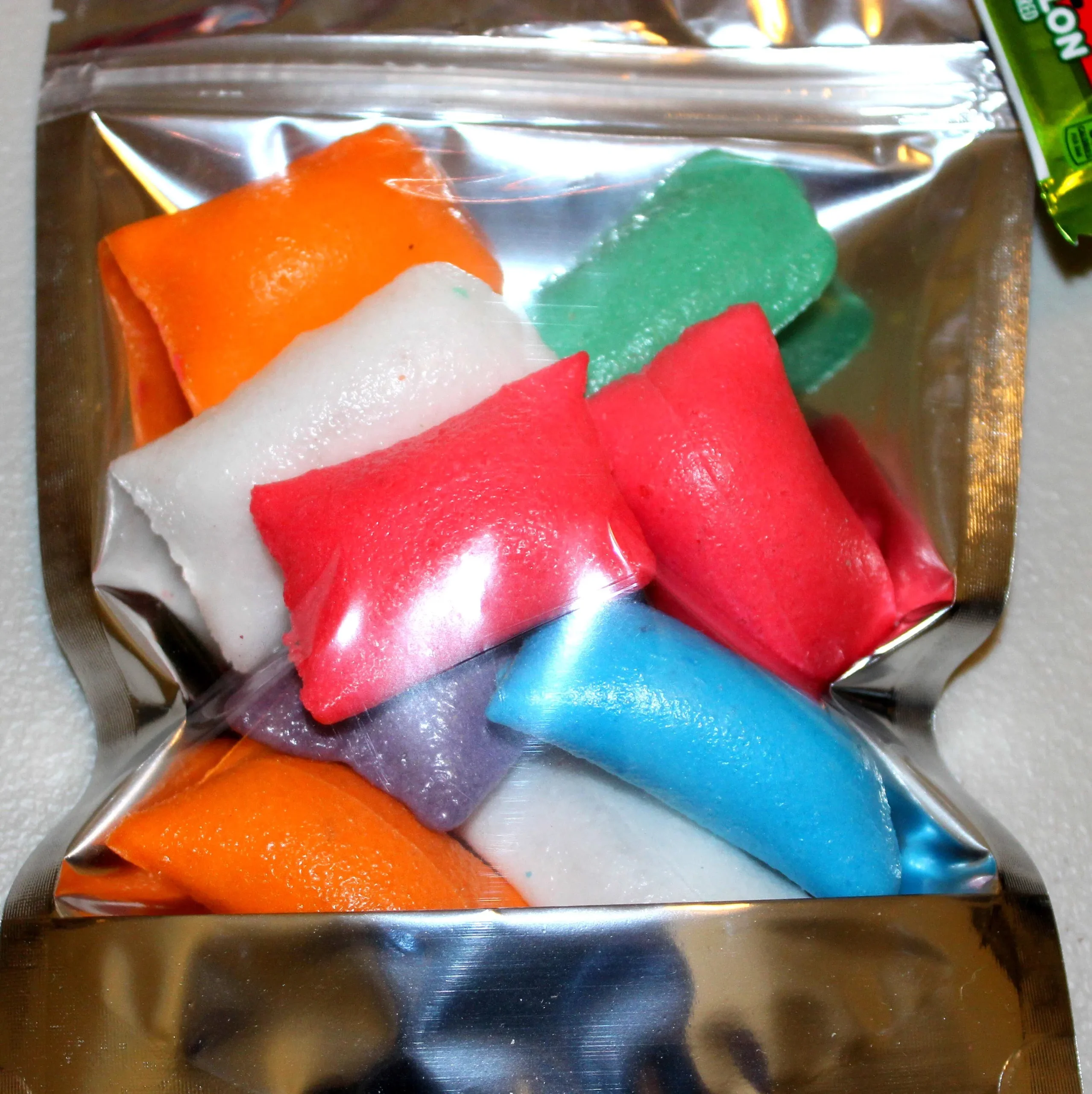 When Air Bites are freeze dried the texture of chewy changes to a crunchy melt in your mouth surprise! The flavors become more enhanced for a burst in your mouth delicious . Packaged in resealable mylar bag for sharing, storage and freshness.